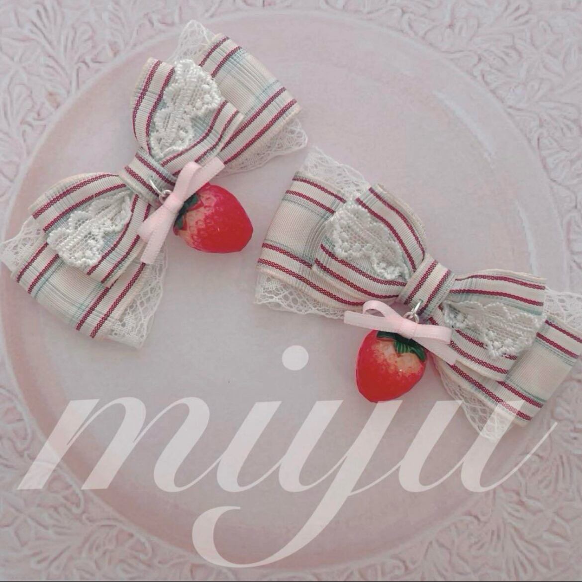 ヘアクリップ (摘みたていちご♡S) ロリィタ クラロリ お花見 ヘアメ