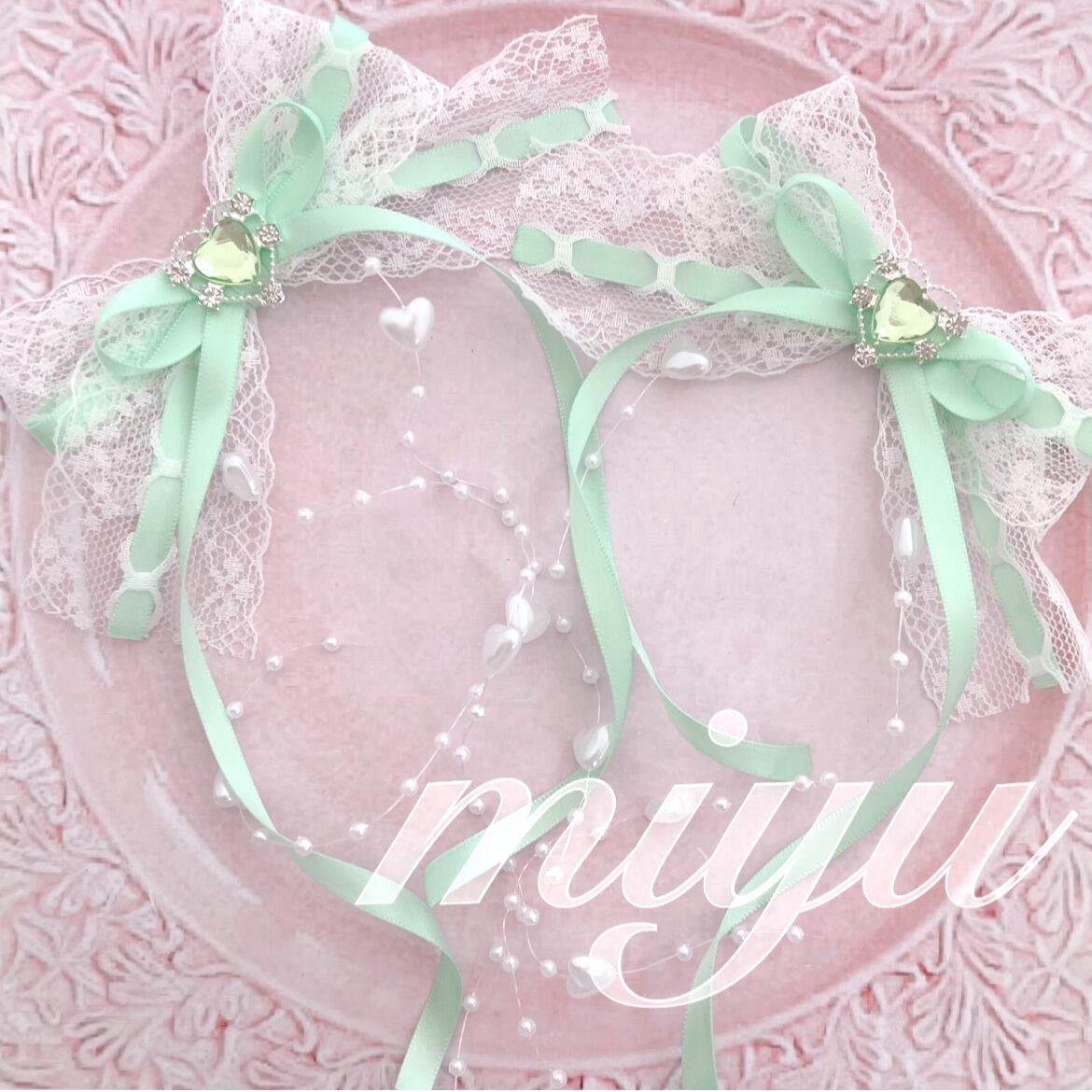 ヘアクリップ Uピン(ガーランドリボン ミントグリーン) ロリィタ 推し活