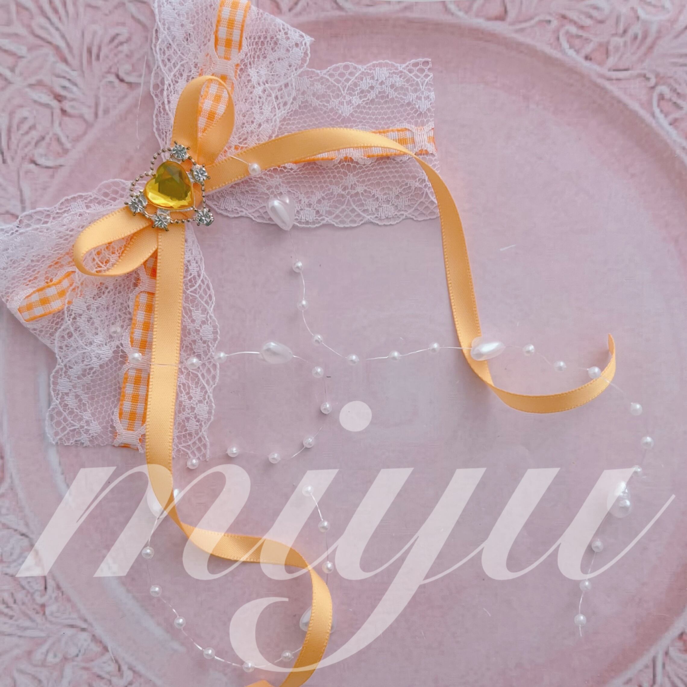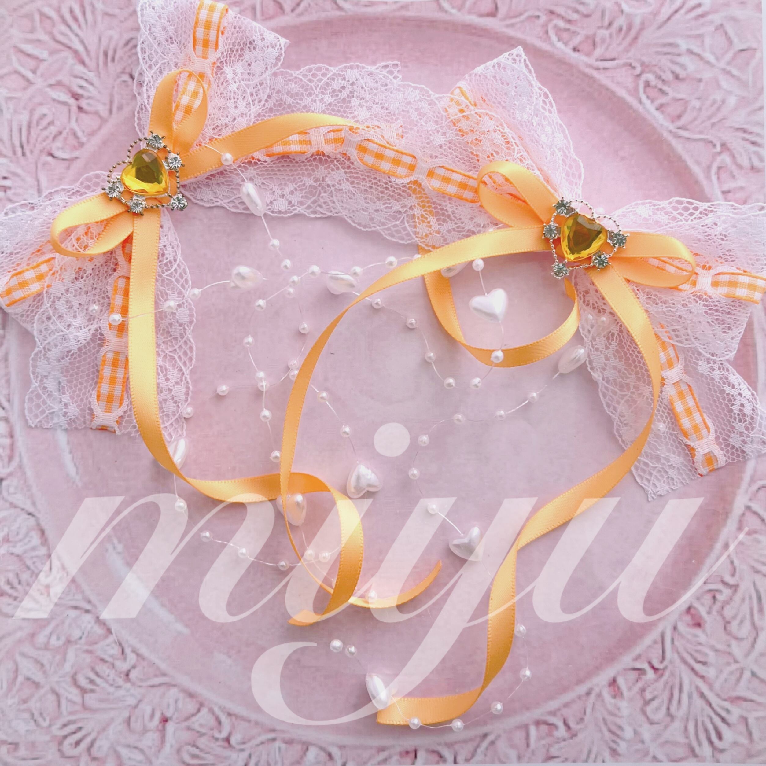 ヘアクリップ Uピン(ガーランドリボン オレンジ) ロリィタ 推し 担当カラー