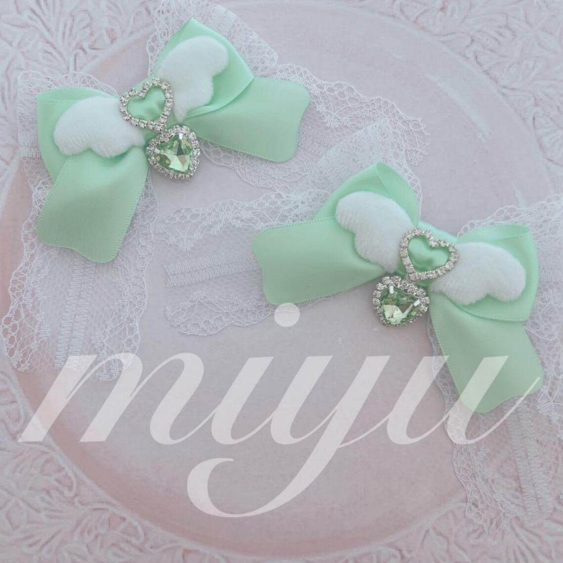 ヘアクリップ(レースサテンリボン໒꒱エンジェル)ロリィタ 推し活 ミントグリーン