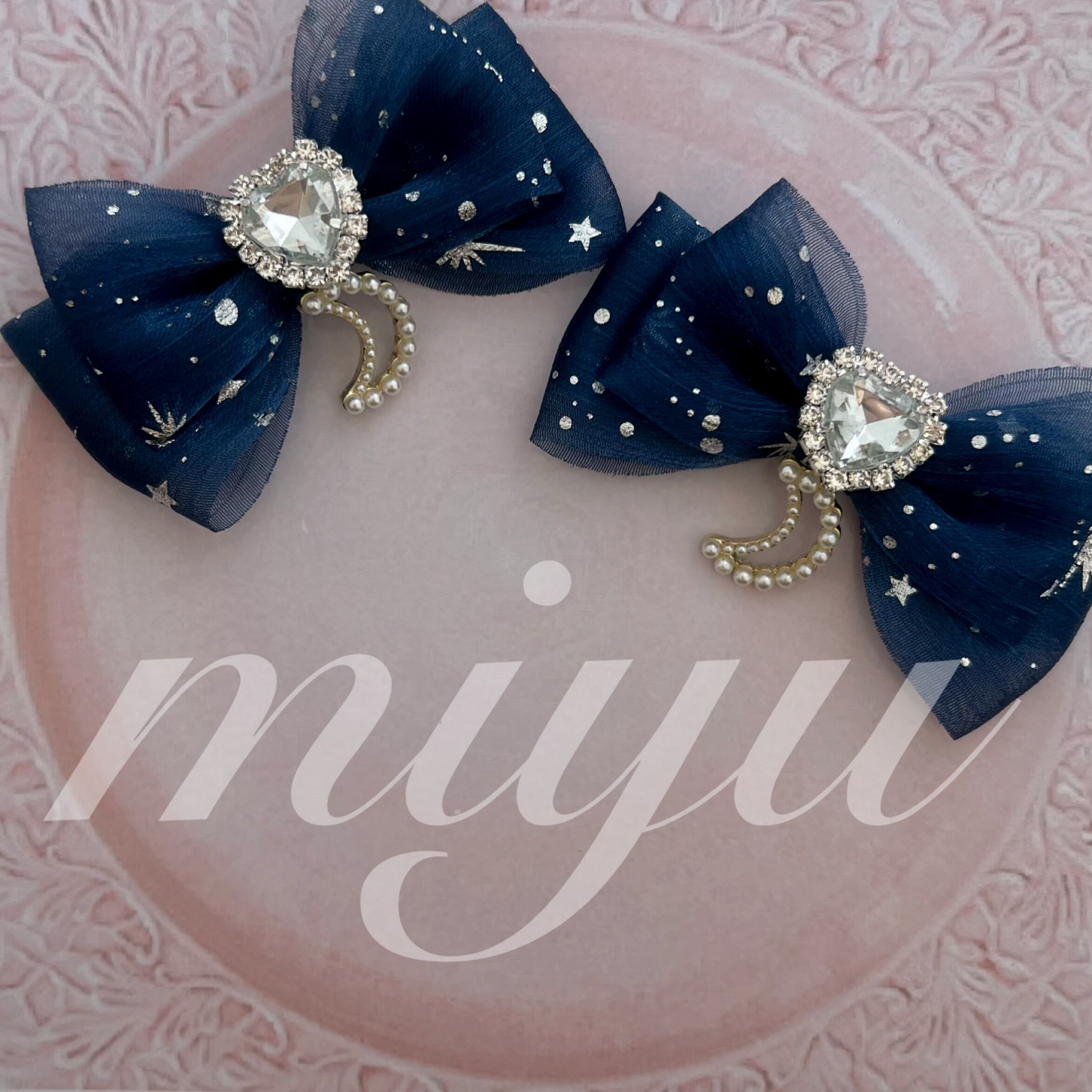 ふんわり星屑リボンのヘアクリップです♡☪︎⋆。˚