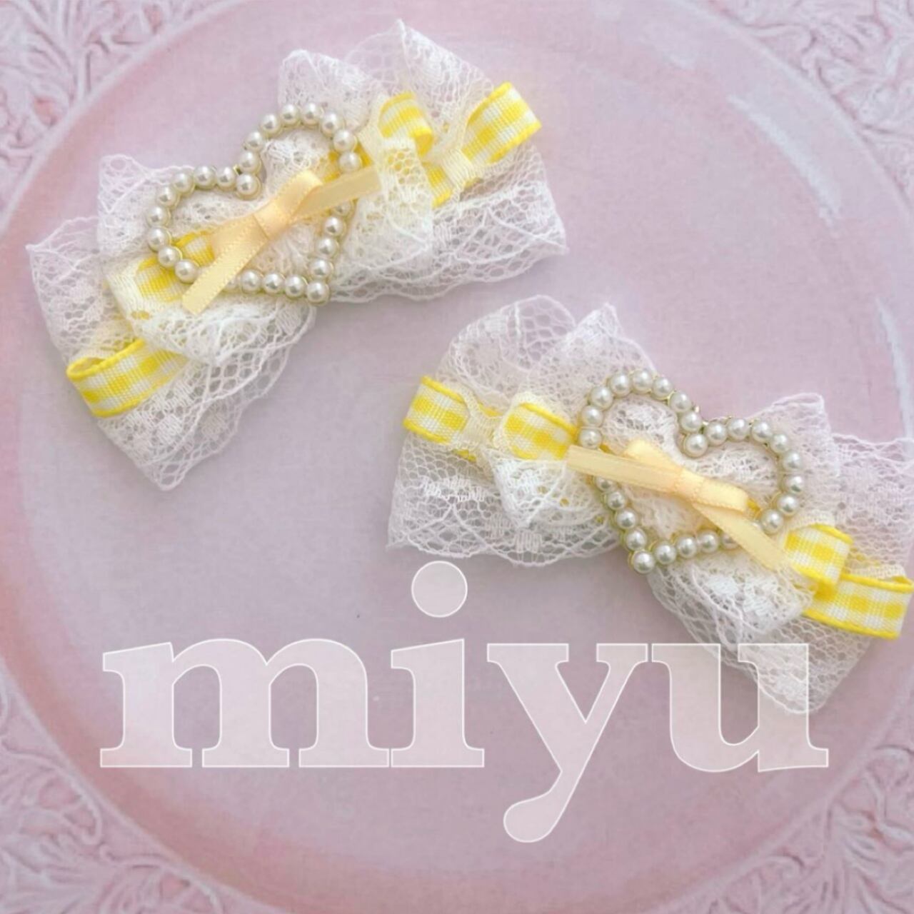 ヘアクリップ(スウィートハート♡レース♡黄色)ロリータ ヘアメ メンカラ 推し