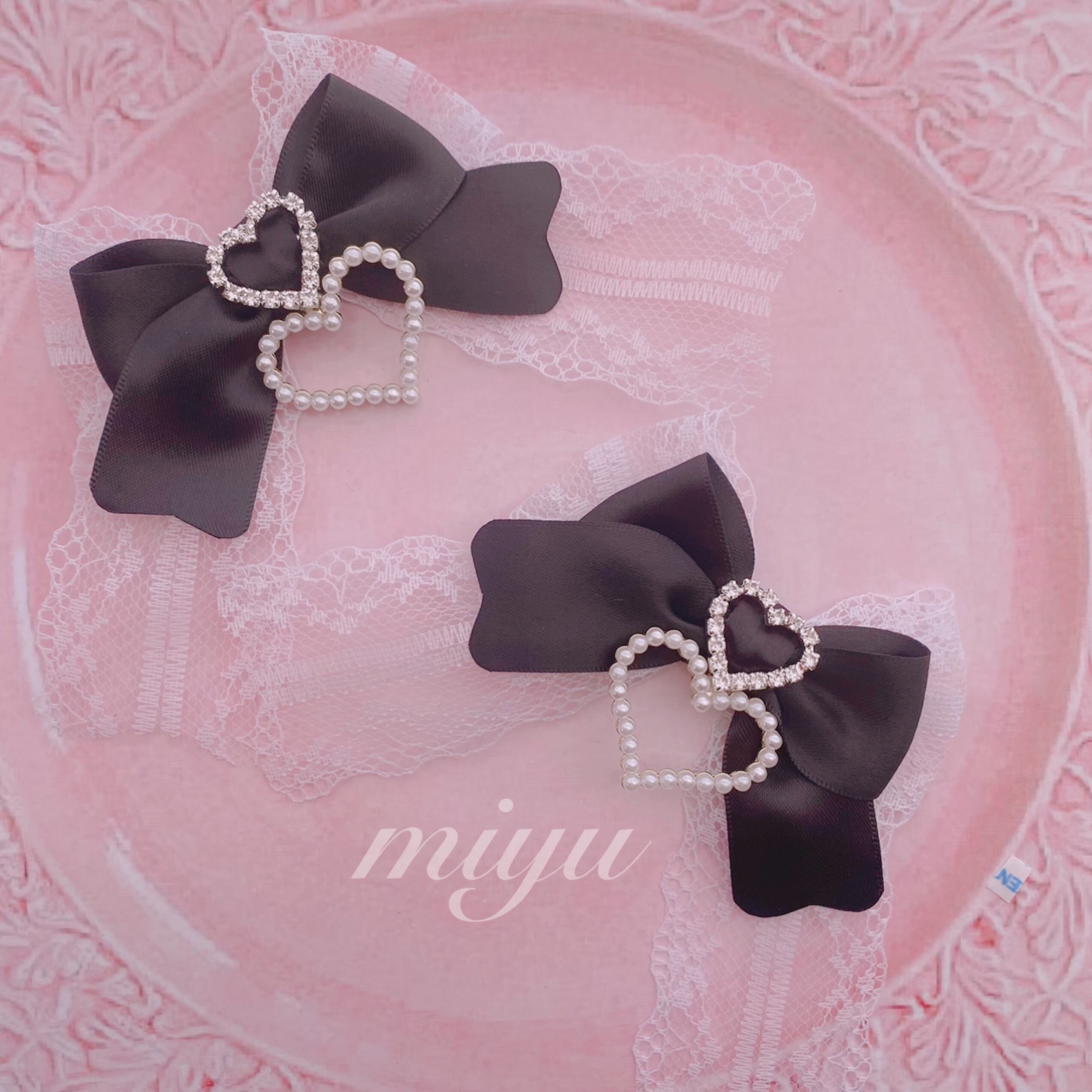 レースとサテンリボンのハートバックルヘアクリップです⑅*˖゜ଘ( ⑅ ᵒ̴̶̷̤ ꒳ ᵒ̴̶̷̤。 )◞ ✩⑅°˖